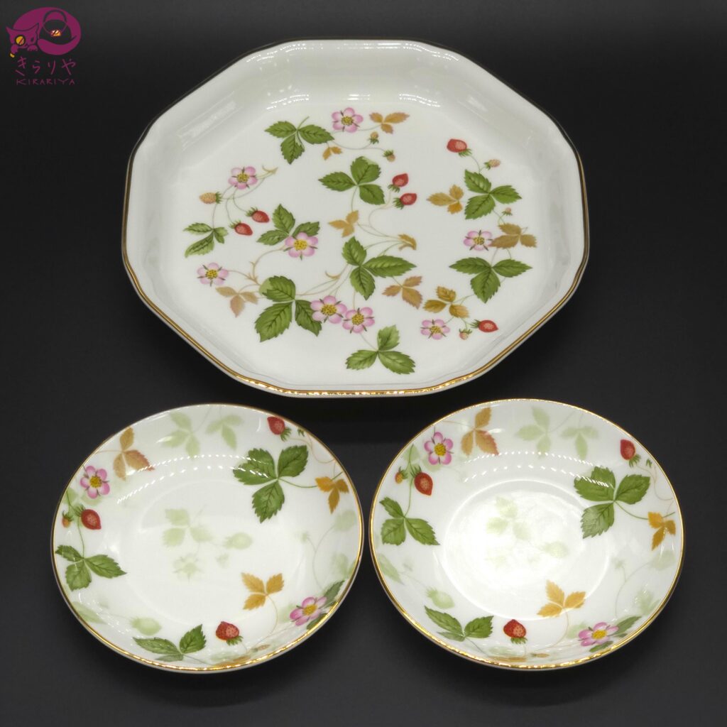 WEDGWOOD ウェッジウッド ワイルドストロベリー オクタゴナルディッシュ&プチトレイ/スモールプレート 3枚セット 未使用品 英国製 ファイン ボーン チャイナ箱 冊子 入荷しました。