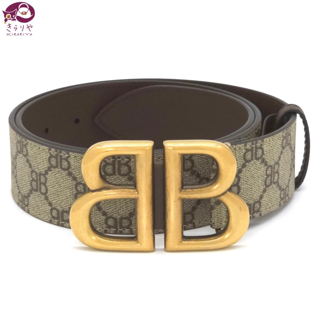 バレンシアガ x グッチ 680453 ザ・ハッカー プロジェクト BB シグネチャー ベルト 90 ウエスト約45~95㎝調整 ラージBBバックル アンティークゴールド仕上げメタル コーティングキャンバス カーフレザー イタリア製 箱 保存袋 冊子類 入荷しました.
